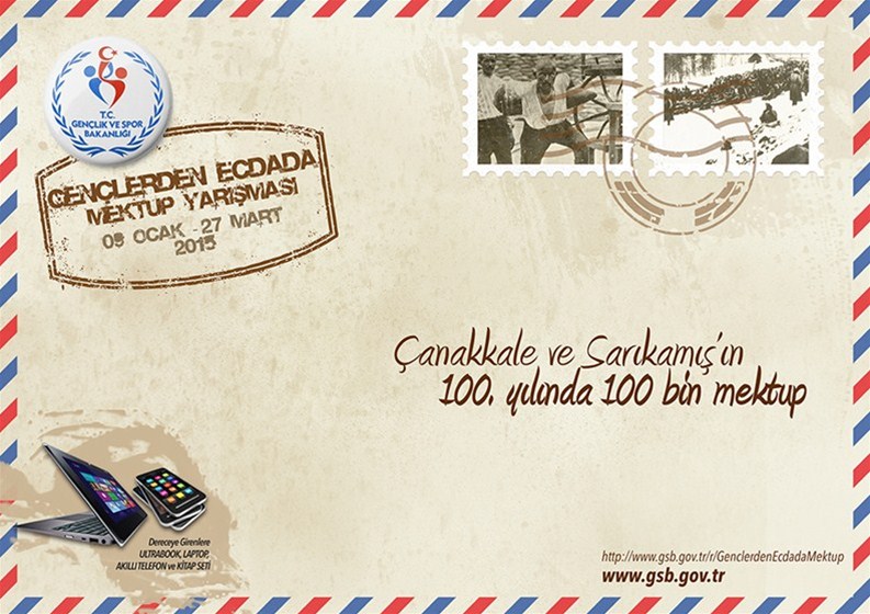 Çanakkale Zaferi ile Sarıkamış Harekatı konu başlıkları altında düzenlenecek yarışmanın başvuru formu ile yarışmaya ilişkin gerekli bilgilerehttp://www.gsb.gov.tr/r/GenclerdenEcdadaMektup İnternet sitesinden ulaşılabilecek.