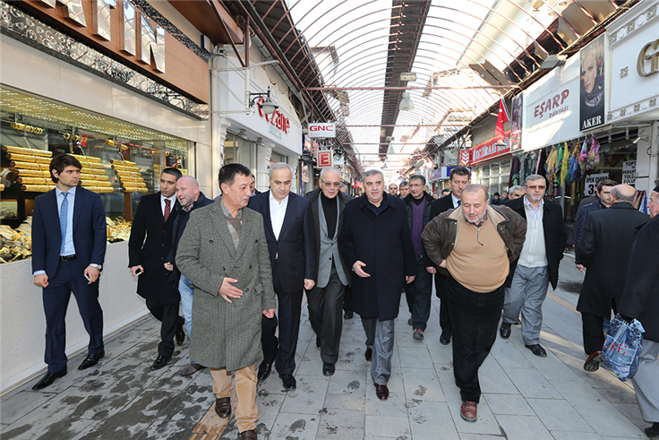 Uzunçarşı esnafı ile bir araya gelen Başkan Toçoğlu, “Uzunçarşı’da devam eden çatı söküm çalışmalarımız kapsamında esnafımız herhangi bir mağduriyet yaşamayacak. Bölge esnafımızın daha iyi şartlarda hizmet sunabilmesi adına Büyükşehir Belediyemiz eliyle ana caddedeki dükkânların girişlerinde geçici önlemler alınacak. Bu şekilde esnafımız ticaret hayatına daha iyi şartlarda devam edebilecek” dedi.